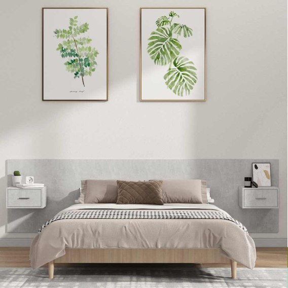 - Nástenný dizajn: Plávajúce nočné stolíky a čelo postele je možné namontovať na stenu. Týmto spôsobom môžete maximalizovať svoju podlahovú plochu a udržiavať priestor čistý.