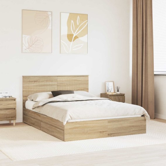 • VidaXL Úložná posteľ Sonoma dub 140 x 200 cm Kompozitné drevo